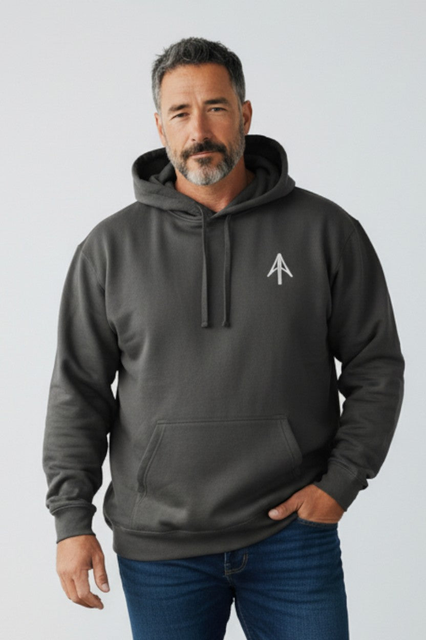 Stay cozy in our Big and Tall Arrow Hoodie, designed for those who need extra room to move. This roomy pullover features an embroidered arrow on the chest and front pocket—a subtle nod to our brand's bold spirit. Perfect for layering or lounging, it's the hoodie that actually fits right. Comfort meets style in every oversized stitch.
